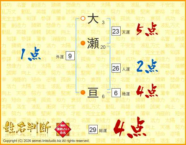 大瀬亘さんの総運は29画の4点!
