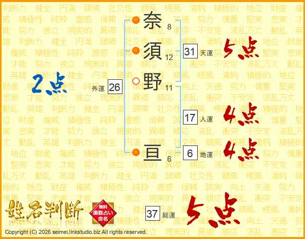 奈須野亘さんの総運は37画の5点!