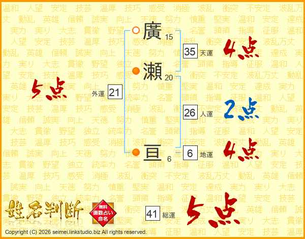廣瀬亘さんの総運は41画の5点!