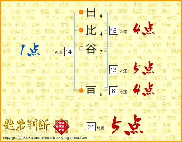日比谷亘さんの総運は21画の5点!