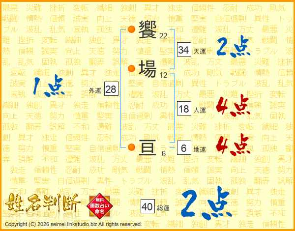饗場亘さんの天運は34画の2点!