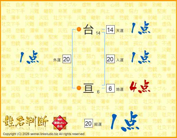 台亘さんの人運は20画の1点!