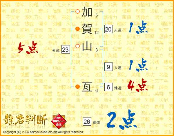 加賀山亙さんの総運は26画の2点!