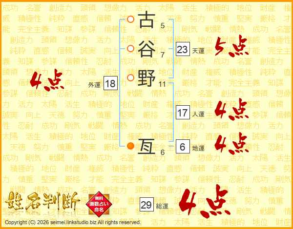 古谷野亙さんの総運は29画の4点!