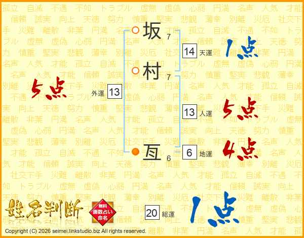 坂村亙さんの天運は14画の1点!