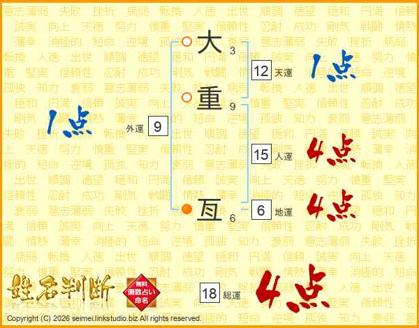 大重亙さんの総運は18画の4点!