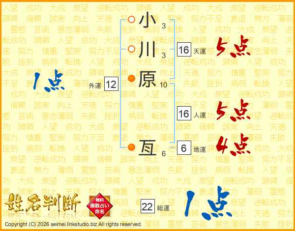 小川原亙さんの人運は16画の5点!