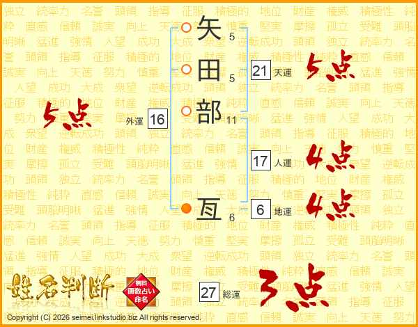 矢田部亙さんの外運は16画の5点!
