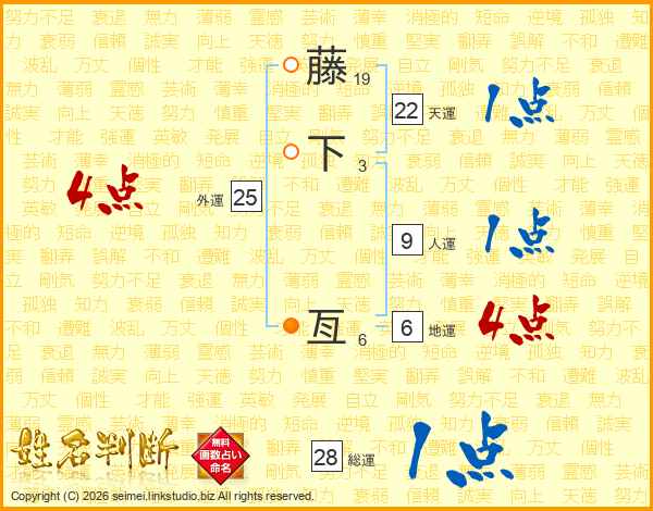 藤下亙さんの総運は28画の1点!