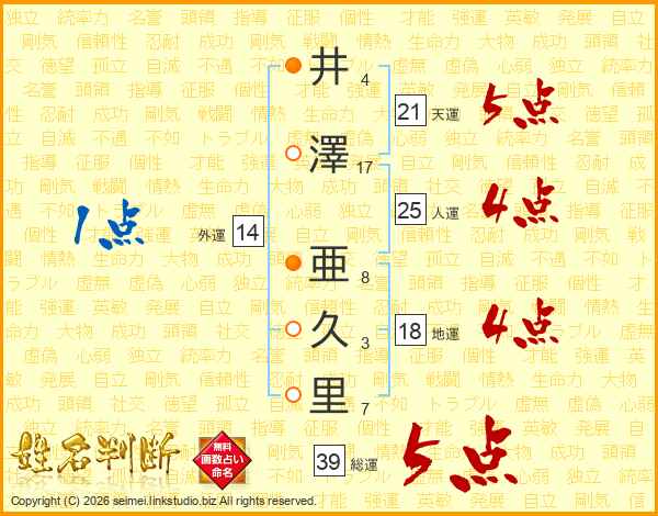井澤亜久里さんの総運は39画の5点!