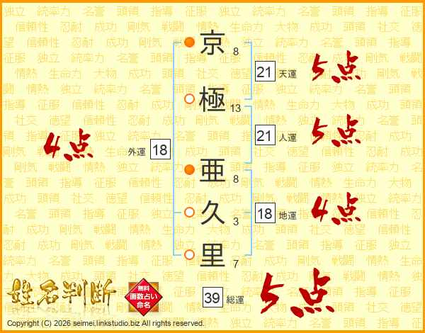 京(8画)極(13画) 亜(8画)久(3画)里(7画)
