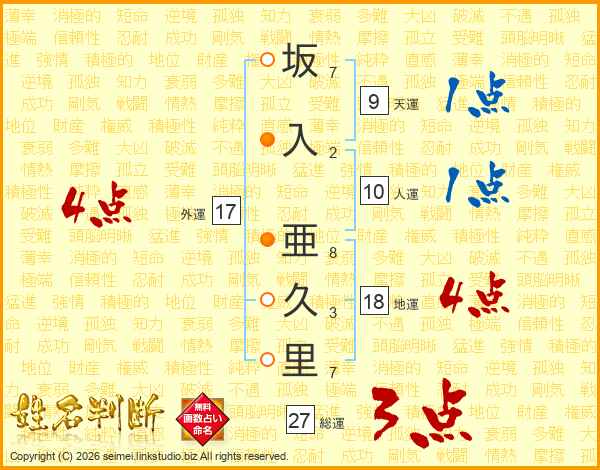 坂入亜久里さんの外運は17画の4点!