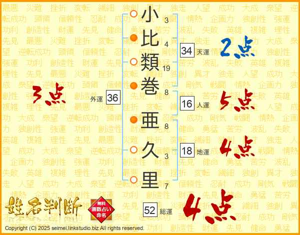 小(3画)比(4画)類(19画)巻(8画) 亜(8画)久(3画)里(7画)