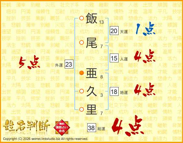 飯尾亜久里さんの総運は38画の4点!