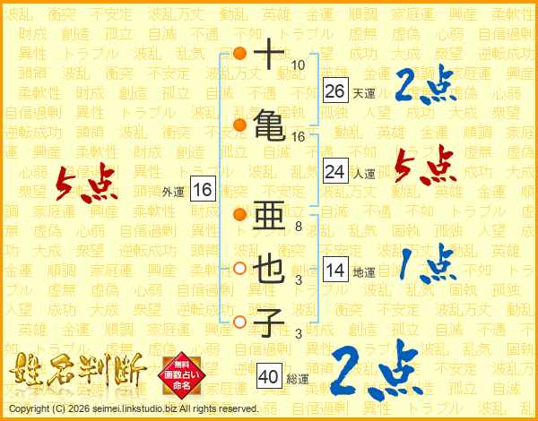 十(10画)亀(16画) 亜(8画)也(3画)子(3画)
