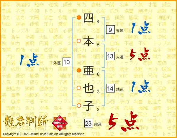 四本亜也子さんの総運は23画の5点!
