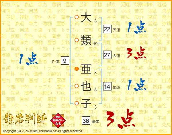 大類亜也子さんの人運は27画の3点!