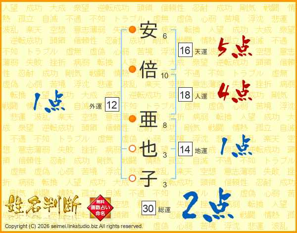 安倍亜也子さんの総運は30画の2点!