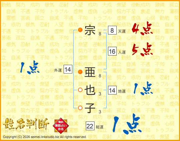宗亜也子さんの総運は22画の1点!