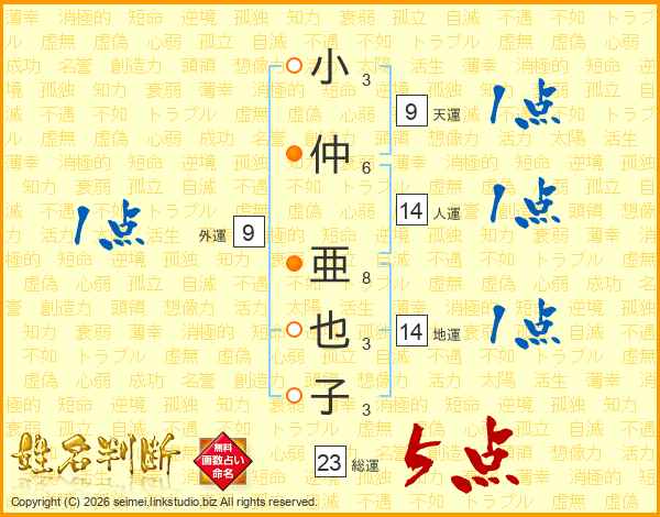 小仲亜也子さんの総運は23画の5点!