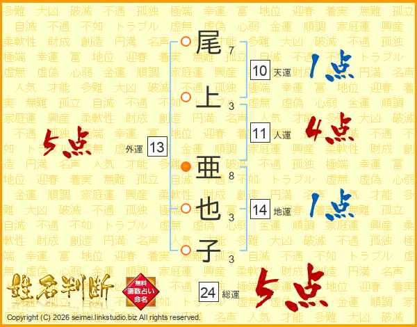 尾上亜也子さんの外運は13画の5点!