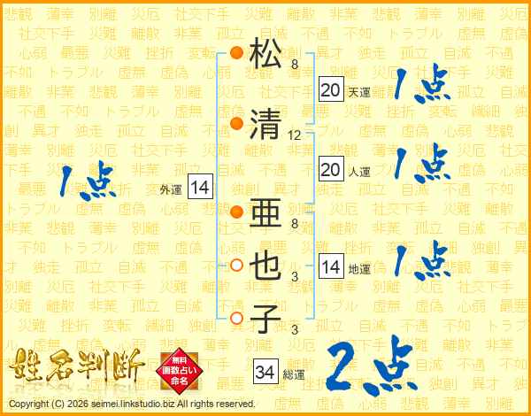 松清亜也子さんの総運は34画の2点!