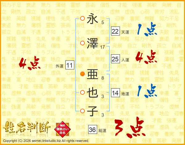 永澤亜也子さんの人運は25画の4点!