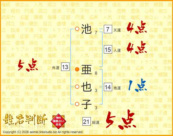池亜也子さんの総運は21画の5点!