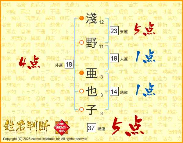 淺野亜也子さんの総運は37画の5点!