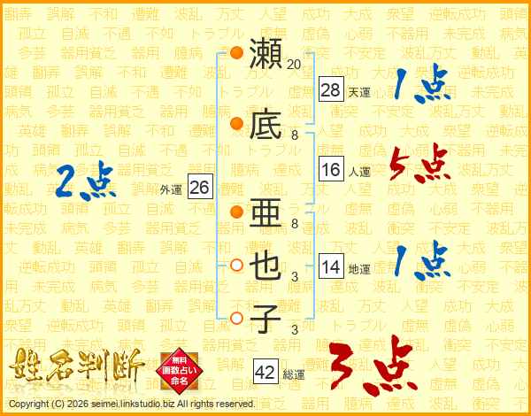 瀬底亜也子さんの外運は26画の2点!