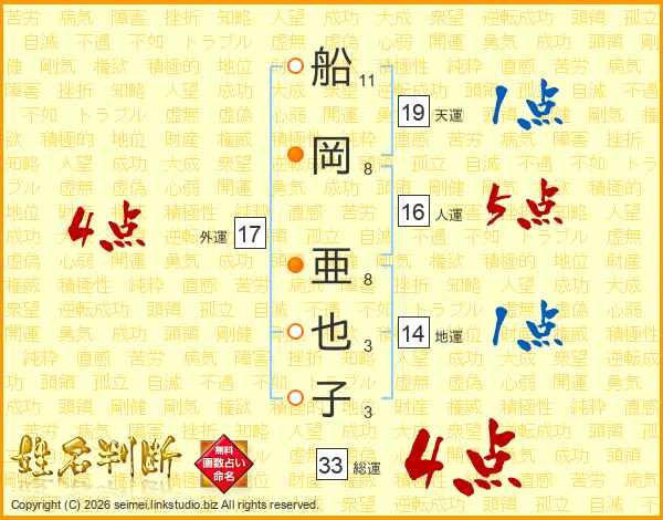船岡亜也子さんの総運は33画の4点!