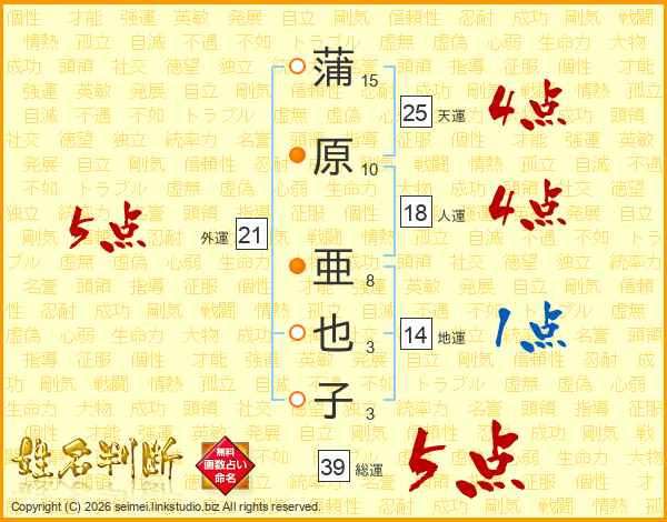 蒲原亜也子さんの総運は39画の5点!