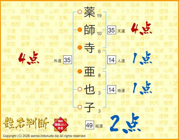 薬師寺亜也子さんの総運は49画の2点!
