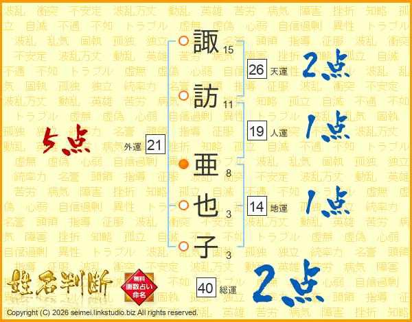 諏訪亜也子さんの外運は21画の5点!