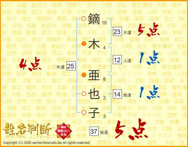 鏑(19画)木(4画) 亜(8画)也(3画)子(3画)