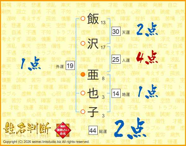 飯沢亜也子さんの総運は44画の2点!