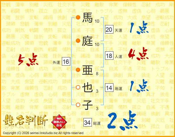 馬庭亜也子さんの総運は34画の2点!