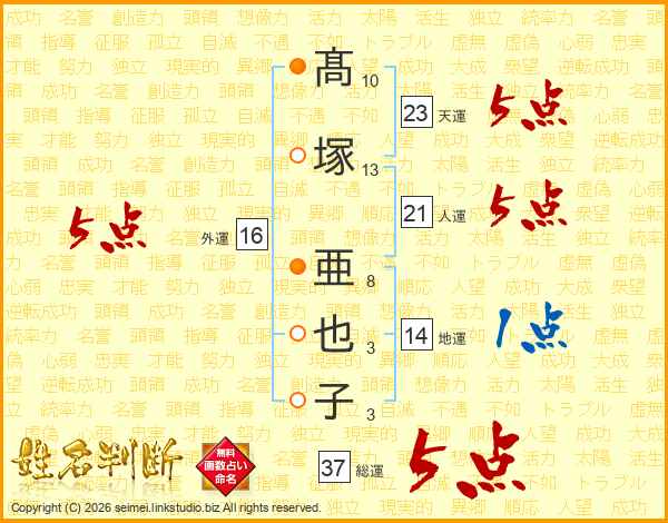 髙塚亜也子さんの総運は37画の5点!