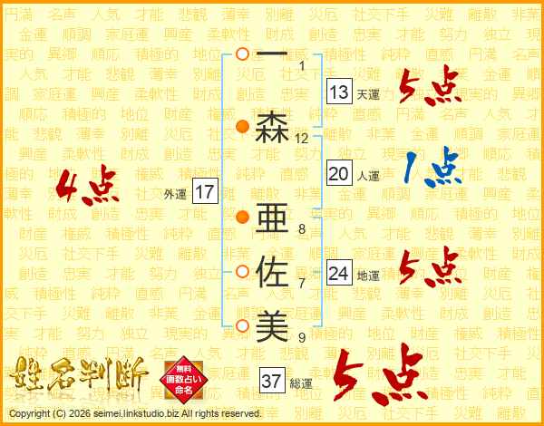 一森亜佐美さんの総運は37画の5点!