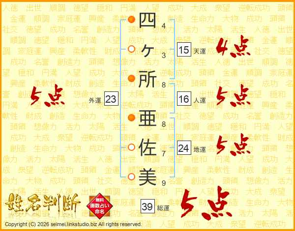 四(4画)ヶ(3画)所(8画) 亜(8画)佐(7画)美(9画)