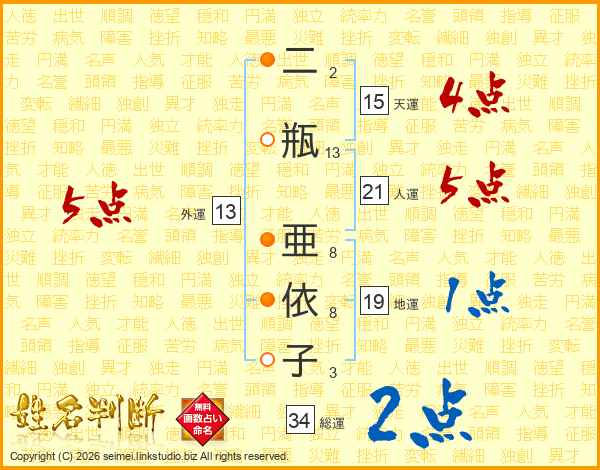 二瓶亜依子さんの外運は13画の5点!
