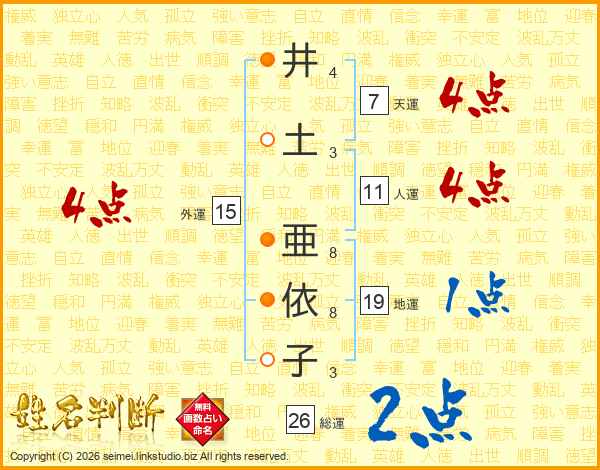 井(4画)土(3画) 亜(8画)依(8画)子(3画)