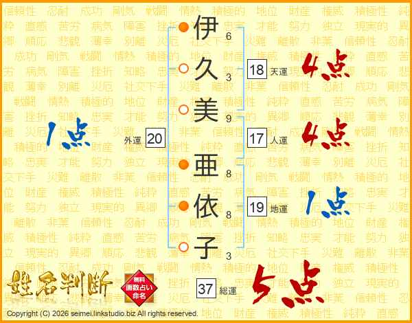 伊久美亜依子さんの総運は37画の5点!