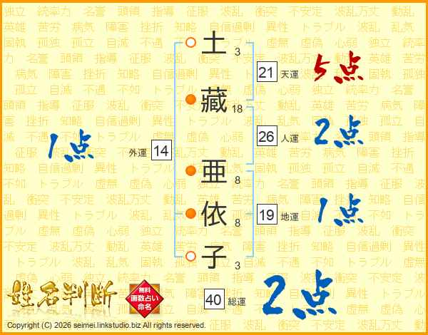 土(3画)藏(18画) 亜(8画)依(8画)子(3画)