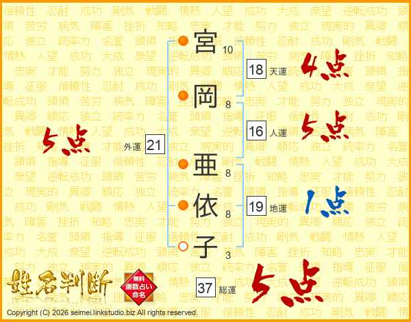 宮岡亜依子さんの総運は37画の5点!