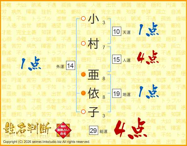 小村亜依子さんの総運は29画の4点!