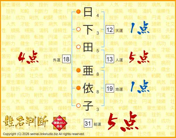 日下田亜依子さんの総運は31画の5点!