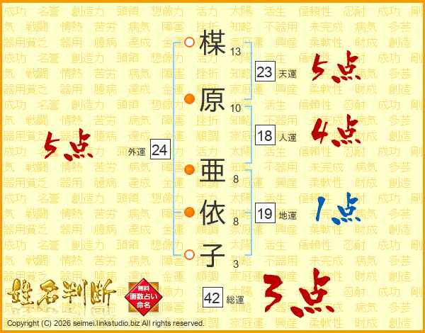 楳原亜依子さんの天運は23画の5点!