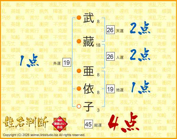 武藏亜依子さんの総運は45画の4点!