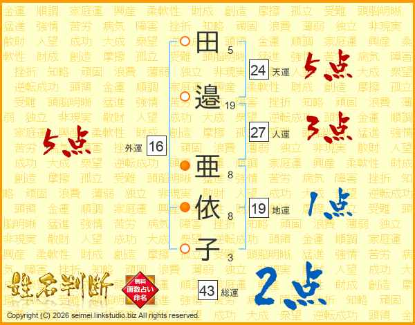 田邉亜依子さんの総運は43画の2点!